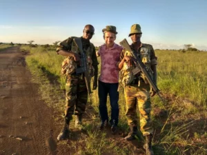 Сценарист фильма «Из Африки с любовью» Виктор Пипа в саванне вместе с охотниками на браконьеров